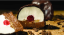 Classic vanilla and chocolate gelato separated by a cherry and sliced almonds covered in cinnamon, finished with a chocolate coating.