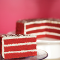 A red hued chocolate layer cake, filled and iced with a smooth cream cheese frosting, finished with chocolate drizzles and surrounded by red cake crumbs. 14 cut, 4.65 oz. each