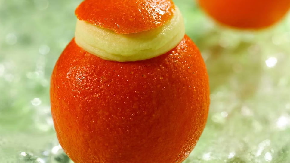 Refreshing Lemon sorbetto served in the natural fruit shell.