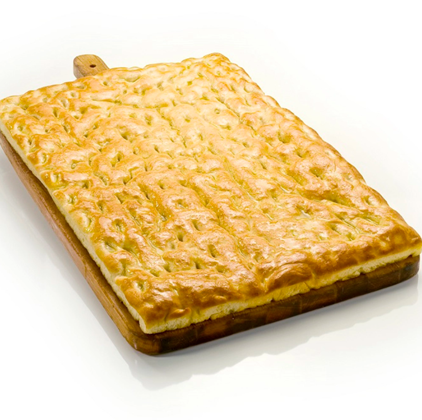Traditional Focaccia Genovese topped with Extra Virgin Olive Oil. 5 sheets, 11"x15", 6.6 lbs.
