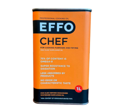 Grown and produced in the Ukraine, EFFO is high oleic sunflower based professional fry oil. Due to its high-oleic fatty acid profile, EFFO oil offers enhanced resistance during the frying process. In professional kitchens where non-stop frying is routine, EFFO oil can lead to increases in frying cycles of up to 100% or more.